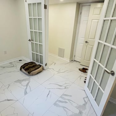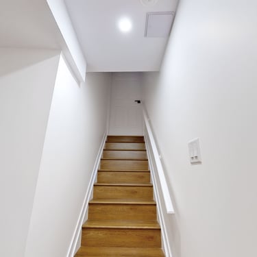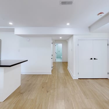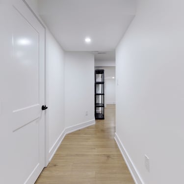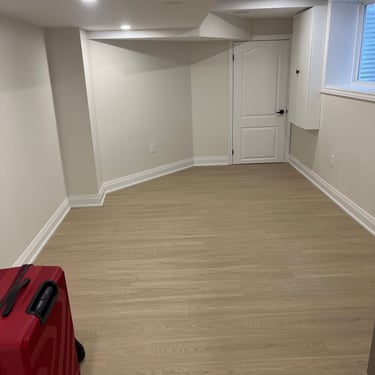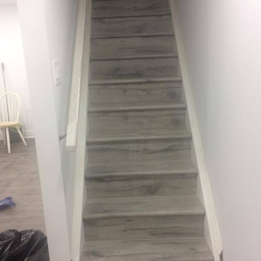 Makeover of the existing dark basement to bright colors & new flooring. Also finished their unfinished closets, stairs, and furnace area for more utilization of space