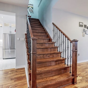 Removed carpeting through out the house and installed hardwood flooring with new oak stairs.