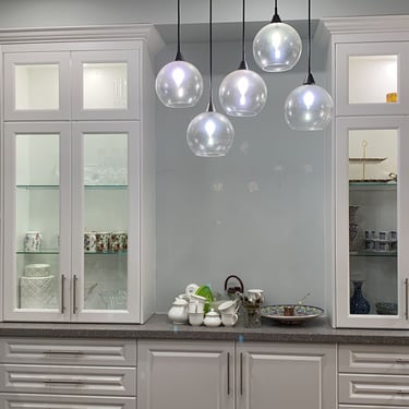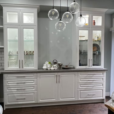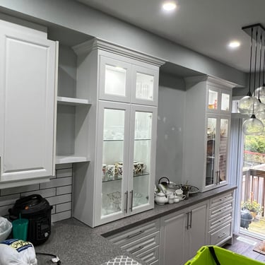 Project scope: New Glass Cabinets, Countertop, base cabinets and pot lights.