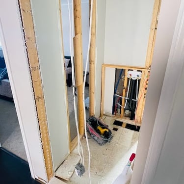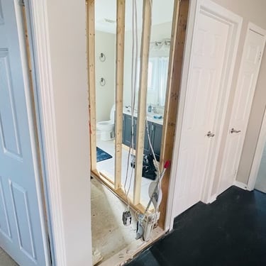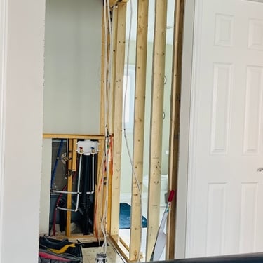 Created additional space for laundry on 1st floor. Moved the closet in the room and utilized the space from closet for laundry. As the space was just beside the washroom, so it was convenient to put water connection and drainage. Rest the left was running the wires from top floor to basement panel.