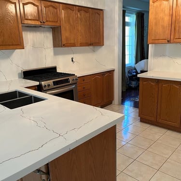 Project scope: Removal and disposal of existing countertop. Installation of new Countertop, backsplash, sink and plumbing.